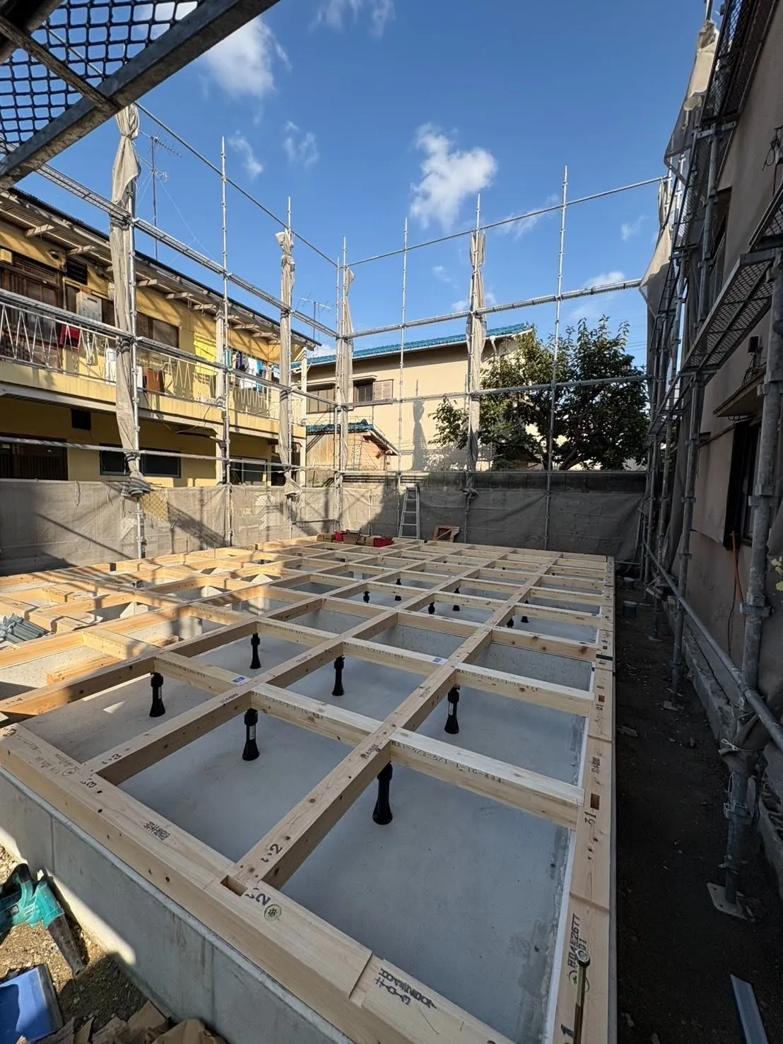 尼崎で元請け工事をはじめて16年以上になるエビスハウス(株式会社Komasu工房)は大工であった社長の経験で土台の下を支える部材をプラ束にセレクトしました。